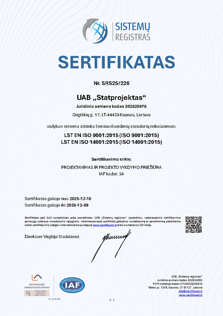 Įmonė sertifikuota ISO ISO 9001:2015 ir ISO 14001:2015